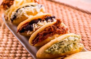 Este platillo lo puedes encontrar en diferentes sabores en Colombia, como arepas de choclo (maíz dulce relleno de queso), arepas de queso y arepas de huevo, por ejemplo.