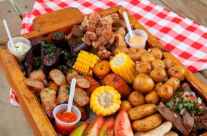 Podrás probarlo con algunos acompañamientos, como papas, plátanos, arepas y maíz. Generalmente, la fritanga se come entre familiares o amigos.