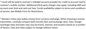 Then choose how the recipient would like to receive the money. If the recipient prefers the money directly to his/her bank account in the Philippines or digital wallets (mobile wallet1), there will be 0 transfer fee2. It is also possible to withdraw money at a Western Union agent location. In this case, the transfer fee3 will be higher, but the recipient can also receive the money in US Dollars (USD), if he/she wants to.