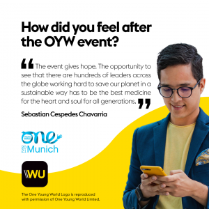 “The opportunity to see that there are hundreds of leaders across the globe working hard to save our planet in a sustainable way has to be the best medicine for the heart and soul for all generations.” Furthermore, Sebastian adds that attending One Young World is like a shot of adrenaline: “It drives the attendees to do more because any action is better than inaction when it comes to achieving the United Nations Sustainability Development Goals as a team that is driven by the same purposes: a better world for everyone.”