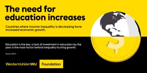 Since 2015, the Foundation has been working to transform the lives of 50,000 of the most underserved youth by teaching them market-ready skills under our ‘Education for Better’ commitment. I’m proud to say that we have nearly completed this goal with the help of Western Union’s employees, agents and customers.