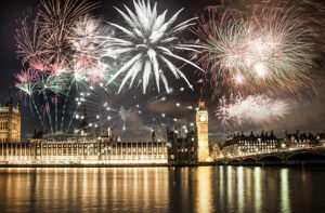 Um dos lugares mais visitados do mundo, Londres, na Inglaterra, é uma cidade encantadora e um excelente destino de ano novo. Uma atração imperdível é assistir à queima de fogos de cima da London Eye e com o cenário belíssimo do rio Tâmisa.