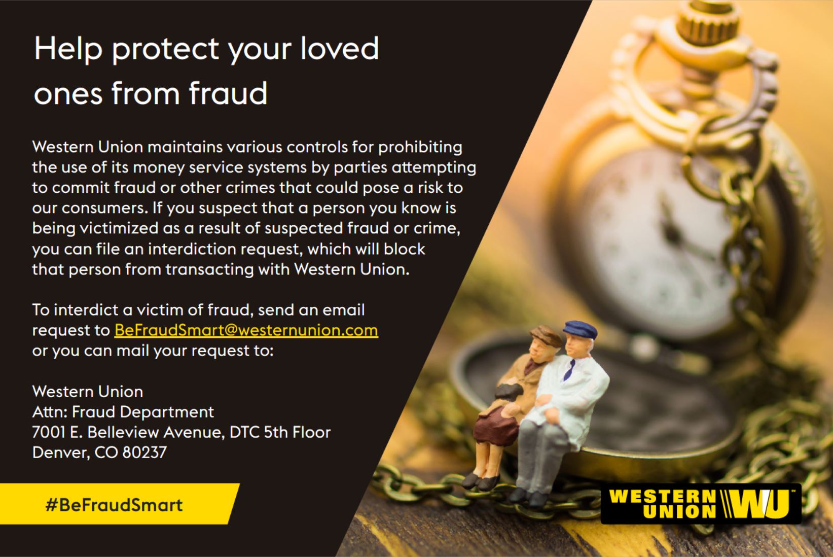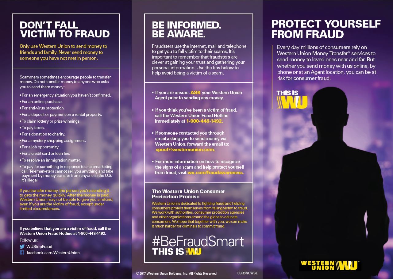 If you believe that you are the victim of fraud, call the Western Union Fraud Hotline at 1-855-273-3132.