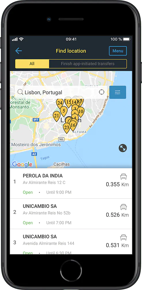 Receive money in Portugal for cash pickup to our hundred of thousand of agent location.