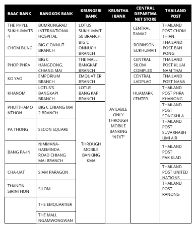 7. Participating agents in this 2025 Songkran campaign are Bangkok bank, Krungsri bank, Krungthai bank, Central Department store and Thailand post, and Bank for Agriculture and Agricultural Cooperatives.
